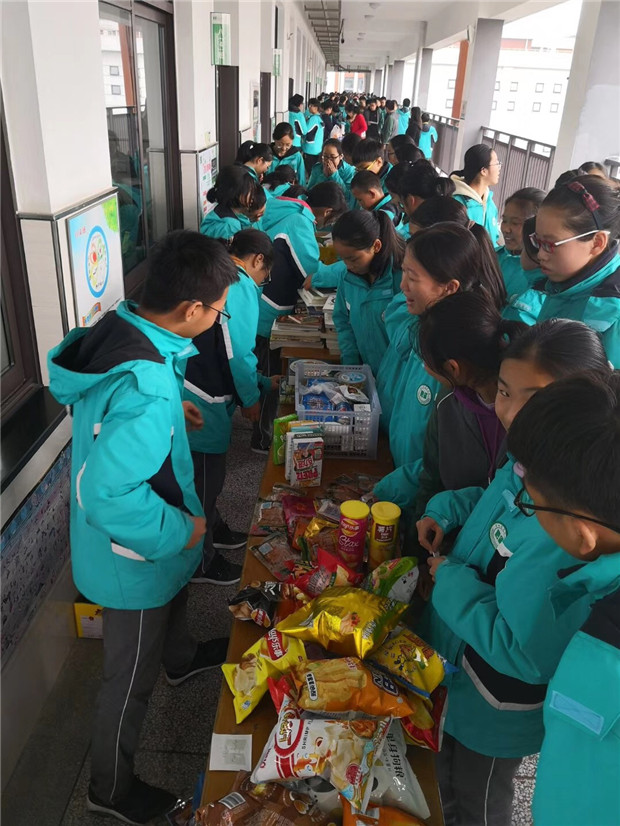 夺人眼球的店铺展板,青春活力的叫卖口号,琳琅满目的义卖物品,这是各班组建的传统爱心义卖街。义卖街上,“商业大咖们”热情高涨,使出浑身解数,有的大声吆喝,有的高举宣传板四处叫卖,有的拿着物品到处推销,略带稚嫩的嗓音,传播着爱心的宣言。有的班级还发挥奇思妙想,开动自己的“商业头脑”,组织了各项小游戏以吸引顾客,扔飞镖、套圈、踩气球……还有“买一赠一”,“套环中奖”等促销手段让人眼花缭乱,同学们新奇不已,各个跃跃欲试。一元、五元、二十元、五十元……一点一点善款的累计,获得的不仅仅是金钱上的满足,更是一份帮助他人的成就感与满足感。