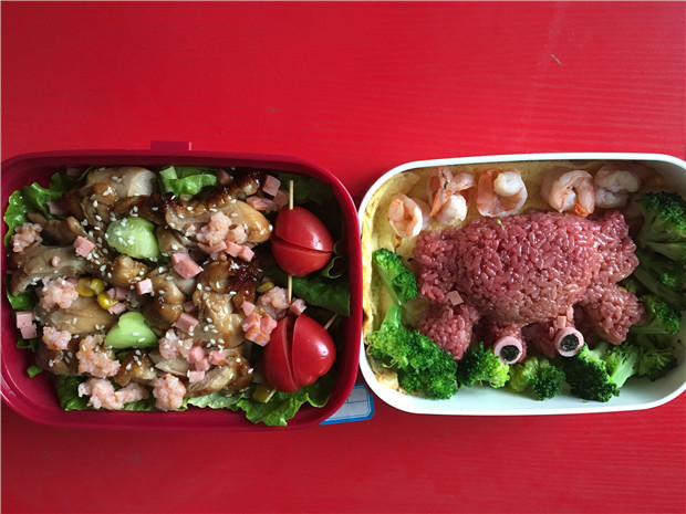 好创意、好故事、好口感、好美观!这是美食观察员们看完“创意便当秀”纷纷发出的感慨。各个班级亲手制作呈上的美食便当可谓是整场活动中的焦点,占得C位,吸引无数师生啧啧称叹。森然熊猫饭团、森香玉兰爪、番茄菠萝饭、粉红猪小妹、虾兵蟹将饭……参赛选手们绞尽脑汁,既讲究荤素搭配,营养均衡,又不忘文化创意,颜值与口味。更打动评委的是美食后的故事,设计中的思考,有和妈妈、外婆共同的记忆,有对校园竹文化的祝福,也有与两三好友友情不散的期待。最是那碗人间烟火,食光不老,我们不散。