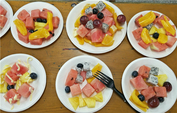 比起传统的爱心义卖街,各班的美食共享站实力抢镜,让人流连往返,目不暇接。缤纷的美食多种多样,色香味俱全,让来往的小食客们垂涎三尺,纷纷难抵诱惑、慷慨解囊。三明治、茶叶蛋、元宵、凤爪、牛排、寿司、辣炒年糕,还有各色西点蛋糕、水果沙拉……中西各色美食,应有尽有,互相PK,看看谁是美食届的C位。孩子们和家长、老师们一同参与,亲自动手,现场制作,在一双双巧手下,玲珑剔透的汤团、香甜可口的饼干、还有童年的味道——棉花糖……味蕾的满足中,同学们一边体验劳动的艰辛和快乐,一边享受亲情、友情、师生情的融合与碰撞,一张张餍足的笑脸,一阵阵欢快的笑声,整个校园都氤氲着欢乐幸福的气氛。