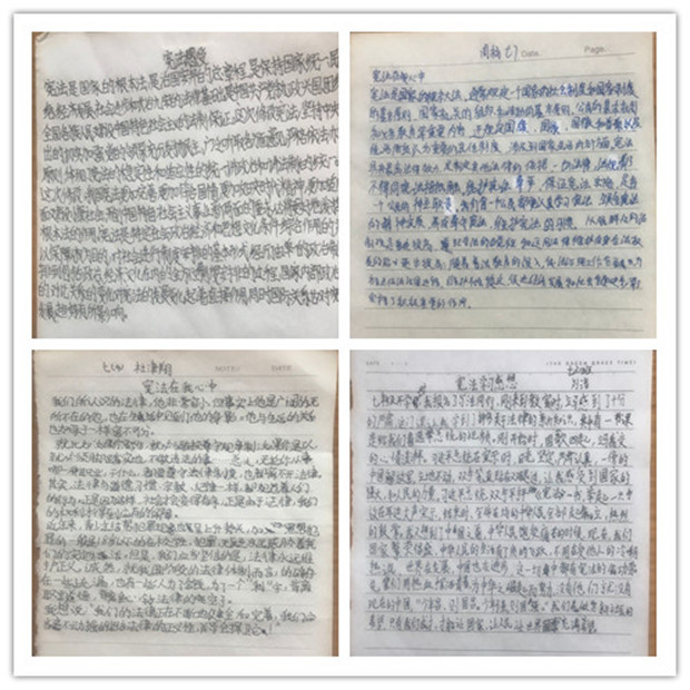 宪法是国家的根本法,是治国安邦的总章程。大多数中学生对宪法缺乏充分的认识,学校通过系列活动,让学生知晓宪法不是大家望尘莫及、高不可攀的,它就像水一般流淌在与我们息息相关的日常生活中,触及我们生活的每个角落。尊法、学法、守法、用法,满怀崇敬,让宪法与民同行。(柏佩婷)