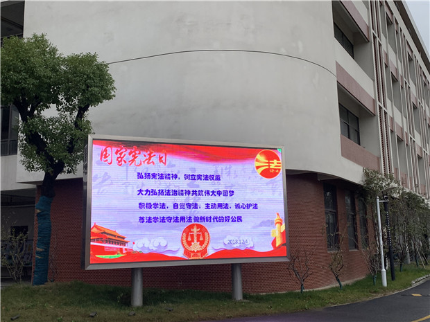 宪法日当天,踏进校园的一瞬间,师生便被电子屏幕上“第五个国家宪法日”这个大字吸引了眼球。校园的长廊上张贴着宪法的基本概念,走过的同学不时驻足阅读。同学们想象中望尘莫及、高不可攀的理论,此时通过凝练的文字,简要的思维导图等多种形式来到同学们身边。