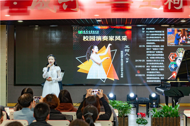 如玉纤指心系物,淡弹琴声香如海。12月6日下午,翠竹中学报告厅座无虚席,琴声飞扬。翠中钢琴才女、郎家班重要成员王柯人“凝翠成竹”个人钢琴独奏音乐会在这里隆重举行。王柯人的亲朋好友、同学老师,社区代表、关工委代表、部分小学老师代表等两百多人欢聚一堂,共同见证她的成长历程。 音乐会上,王柯人演奏了肖邦、贝多芬、李斯特等钢琴大家多首中外名曲。 著名音乐家贝多芬的《第十八号奏鸣曲》风格明快,犹如夜晚明星降临窗边,轻叩窗扉;“钢琴之王”李斯特的《狂想曲NO.11》主题热情奔放,旋律舒展畅达,充满了天马行空的幻想;而《爱之梦》则用深情婉转的旋律和愈发热烈的情绪打动着每一位听者的心,唤起听众对爱的渴望和追求。 演奏肖邦的《第一叙事曲》时,王柯人的琴声时而抒情时而悲壮,非常具有戏剧性,为全场营造出“于无声处听惊雷”的效果,给听众带来了无比震撼的听觉盛宴。伴随着一首首优美的旋律和曲调,现场听众的心也随着琴键的跳动,波荡起伏,如痴如醉。 令人惊喜的是,王柯人的独奏音乐会上还邀请到了同为翠中学子的三位嘉宾。钱子坤团队精心设计了开场音乐和结束音乐;芦昳的小提琴独奏《维奥蒂第二十三协奏曲》音符有力、节奏均匀,演奏朴素而大气磅礴;而祁知远的双排键独奏《加勒比海盗》气势恢宏、感人至深,令人热血沸腾,燃爆全场。而后一曲《敦煌随想》又以优美而充满西域风情的旋律让听众的心情恢复平静! 美好的时光总是短暂的,音乐会在一曲唯美清澈的《彩云追月》声中落下帷幕。音乐会结束后现场爆发出雷鸣般的掌声,观众们久久不愿离去,意犹未尽。 据了解,王柯人今年12岁,五岁开始学钢琴 ,七岁时在上海音乐学院贺绿汀音乐厅上国际钢琴巨星郎朗的大师课后深受好评。此后也经常得到郎朗大师和郎爸的指导。2017年受郎朗大师的邀请,分别担任了“郎朗2017城市新年音乐会”全国巡演,天津站与重庆站的特邀嘉宾,与郎朗大师同台演出。2017年12月和郎朗大师在东方卫视的今夜现场秀同台表演。2018年1月参加"格莱美向古典音乐致敬"的音乐会,在纽约卡内基音乐厅演出。2018年7月青岛国际音乐节在青岛大剧院钢琴独奏表演。现在也是郎家军的重要成员! 如今,王柯人就读于翠竹中学七年级。怀揣着心中的那份钢琴梦想,她始终在努力,一直在坚持。我们相信,这样一个年轻有为、青春勃发的阳光少女,一定会在钢琴这条大道上越走越远!她会继续用跳跃的音符、灵动的手指,创造出更加多姿多彩的美好乐章!祝福王柯人!(李秋)