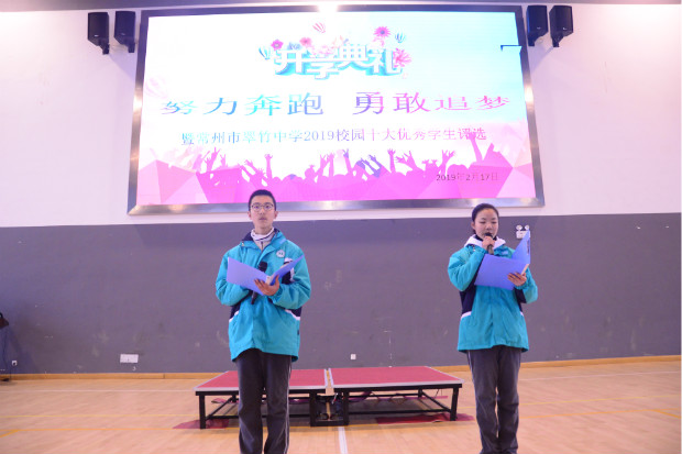 最后,15位优秀学生候选人向在座的师生献上新学期祝福,翠竹中学2019年春学期开学典礼在浓浓的祝福暖暖的春意中拉下了帷幕。(毛乐乐)