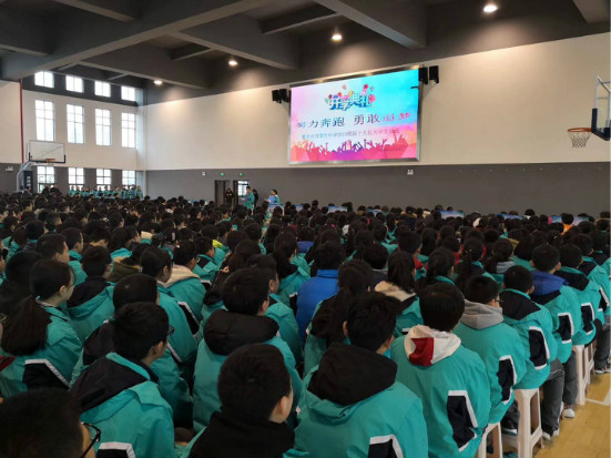217日报到日,常州市翠竹中学全体师生齐聚体育馆,参加“努力奔跑,勇敢追梦”新学期开学典礼。