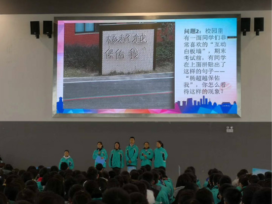 这次选拔除了突出候选人的能力,鼓励他们按照要求自主独立的准备展示,更难能可贵的是引导优秀学生关注社会关注学校,引导他们发现身边的问题,并积极思考相应对策。比如:在现场问答环节中,问题的选择来自身边,像家长接送孩子时乱停车现象的解决方法,对校园不文明现象的看法,对所谓校服“潮流”穿法的建议等等。学校希望通过活动,引导优秀学生自觉承担起更多的责任,激发他们的使命感责任感,传播正能量,同时,全方位多角度向老师同学展现优秀学生的形象,有利于增强优秀学生的知名度,树立榜样,增强榜样的辐射强度。