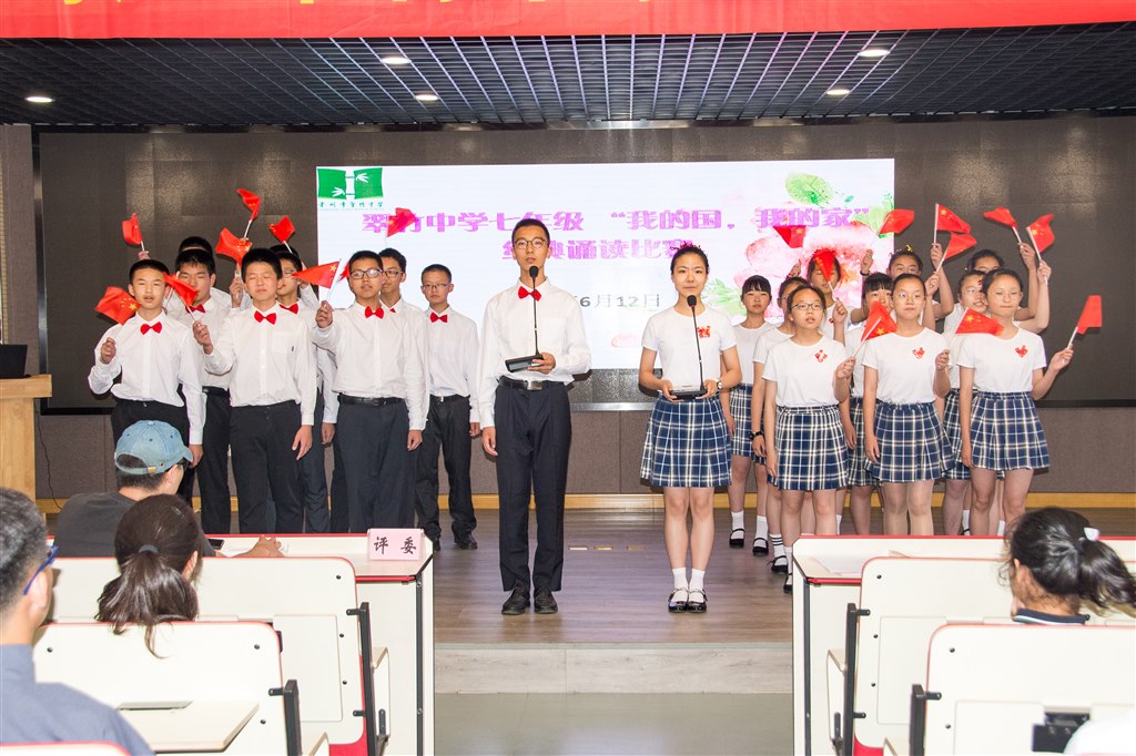 当朝霞抹去了黎明前的黑暗,当希望冲淡难咽的苦难,伤疤从未淡却,可在激昂的少年口中,一切一切的沉痛都不会成为枷锁。“少年志则中国志,少年强则中国强”,少年颂中华,让中华闻于世界。为此在语文组的精心策划下,612日下午,我校七年级展开了“我的国,我的家”经典诵读比赛。