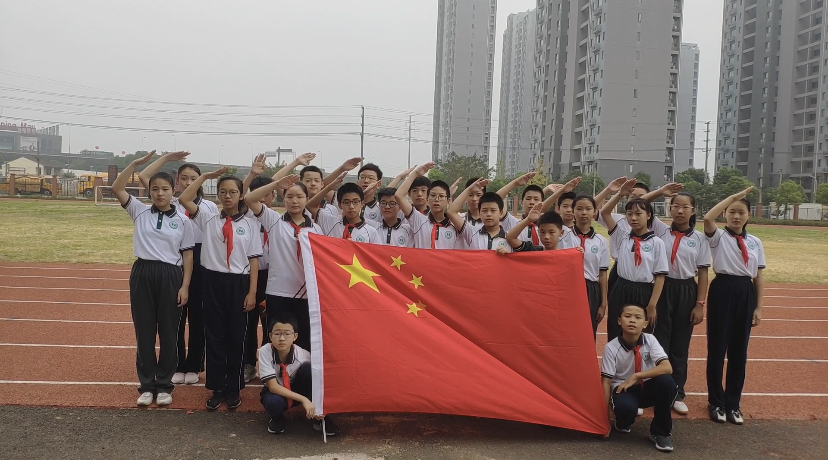清晨,迎着一抹东升旭日,七年级的同学们争先恐后地“捧”起鲜艳的五星红旗,光荣地成为一名名小小“护旗手”,举行了一场特别的小型升旗仪式。他们一起用心将对祖国的热爱书写成祝福,张贴在教室门前的栏杆上,汇聚成五彩斑斓的祝福墙,一起精心布置好爱国主题黑板报、教室门前插上鲜艳的小红旗……洪亮的国歌声中,国旗冉冉升起,虽然动作稚嫩生涩,内心却无比的赤诚与激动!