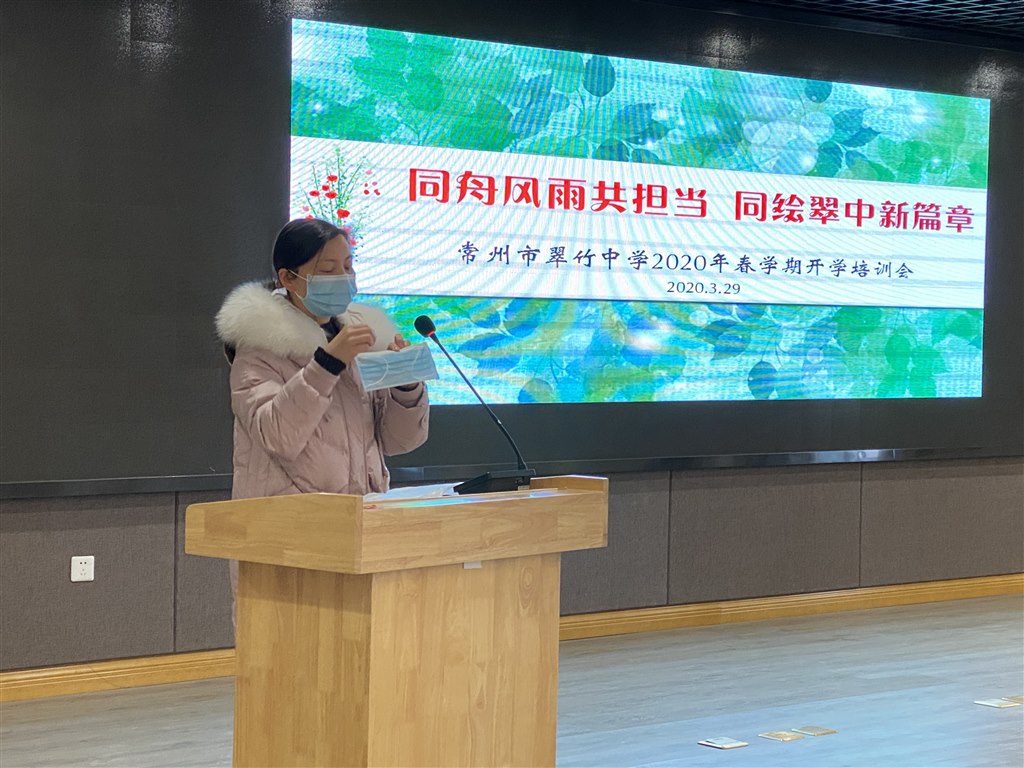 春天如约而至,校园书声开始响起,为确保安全开学,守护师生安全,翠竹中学于3月29日4月3日分别召开教职员工开学培训会,会议由周贵兴书记主持。 张和英校医首先从专业的角度向教工介绍了开学后疫情防控的注意事项,并就如何通风消毒、如何做好个人防护、如何关注学生健康等方面进行了专业培训。随后办公室宋华燕主任就疫情防控阶段教师的一日常规,工作要求做了明确。屠国斌副校长就开学后如何一手抓疫情防控,一手抓教育教学对教工提出了建议和要求。陈校长最后表示,全面复学之际,学校要确保两条生命线:一是师生健康的生命线,二是教育质量的生命线,希望教职员工提高思想认识,做自尊的翠中好教师;严格执行规定,做自律的翠中好教师;认真开展教学,做自觉的翠中好教师;发扬翠中精神,做自信的翠中好教师,全体翠中人共同守好防疫期间每一道关口,确保师生生命安全。