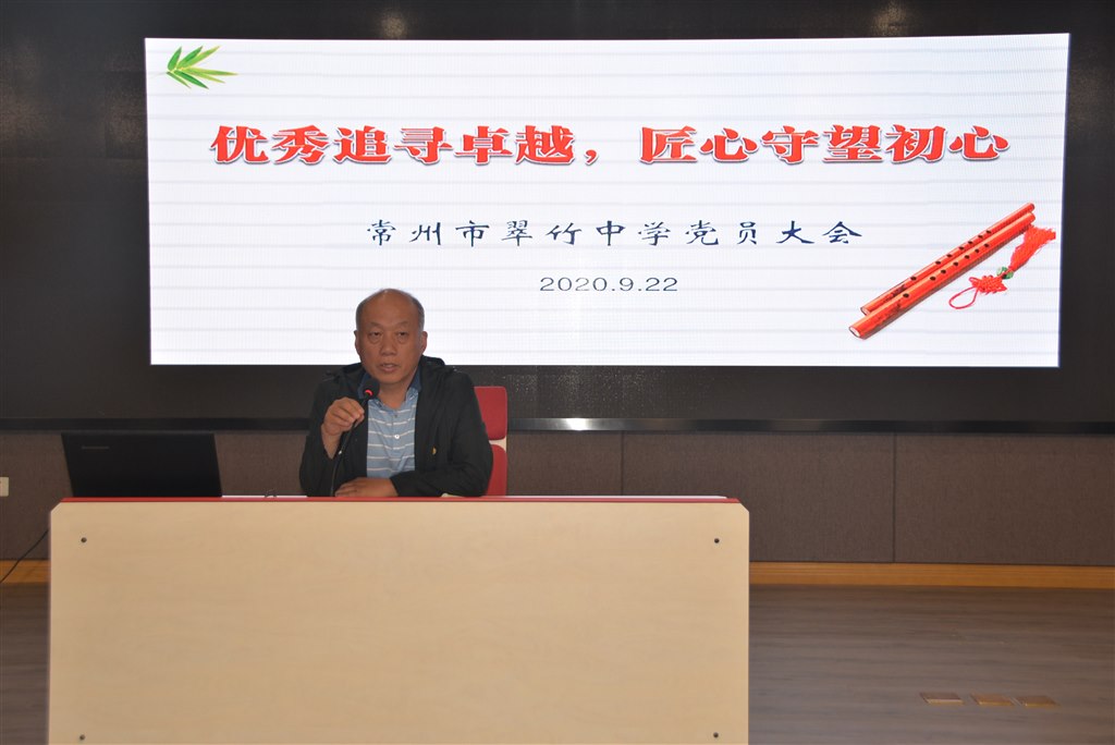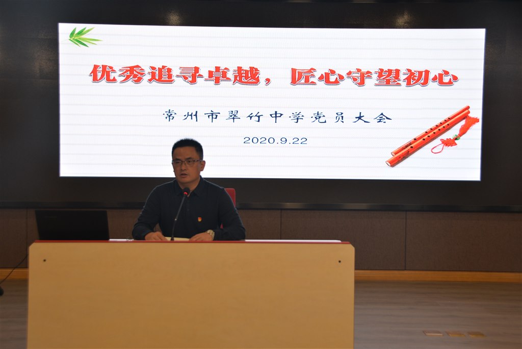 2020922日下午,常州市翠竹中学召开了2020-2021学年度第一次党员大会。本次大会由周贵兴书记主持,陈文伟校长做重要讲话。