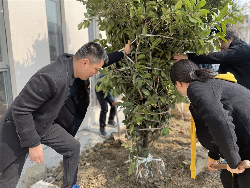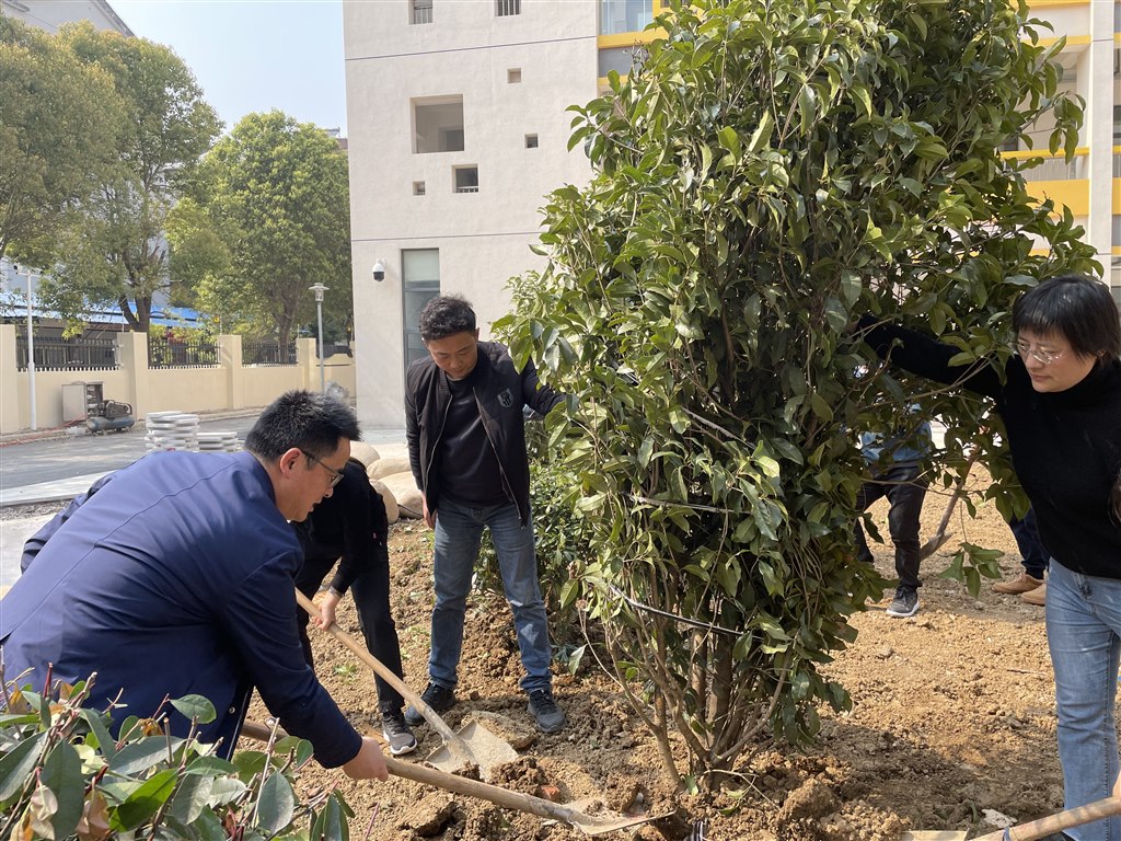 春光漾漾,万物萌动,3月25日下午翠竹中学部分党员同志回到即将重启的新校园,共赴一场春天的约会。 与春天的新校扑了个满怀 党员同志们在校党支部周贵兴书记和总务处许政卫主任的带领下参观了新校。看了又看那“灰黄”的教学楼,瞧了又瞧那“旧识”假山石,盼了又盼那归家的美好时刻……聆听着陈文伟校长对学校文化建设的规划,畅想着未来满是书香与诗意的翠中校园,美好的愿望在春天的新校氤氲着香气。 在春天的新校种下抹绿色 3月是生命教育月,3月更是种植希望的时节。新校的绿化种植正在进行中,翠中党员同志拿起铁锹为新校增添一抹绿。一锹,一扶,一推,一拍,齐心协力种下寓意着崇高美好的桂花树。从此,每一片叶子的绿,每一朵桂花的香都将伴随新校,伴随翠中师生励节成长。 春风拂面,希望翻飞。十年树木,百年树人。带着对学校发展的憧憬,带着对新校区的美丽祝愿,共绘翠中生机明天。 撰稿:柏佩婷 拍摄:柏佩婷 审核:宋华燕
