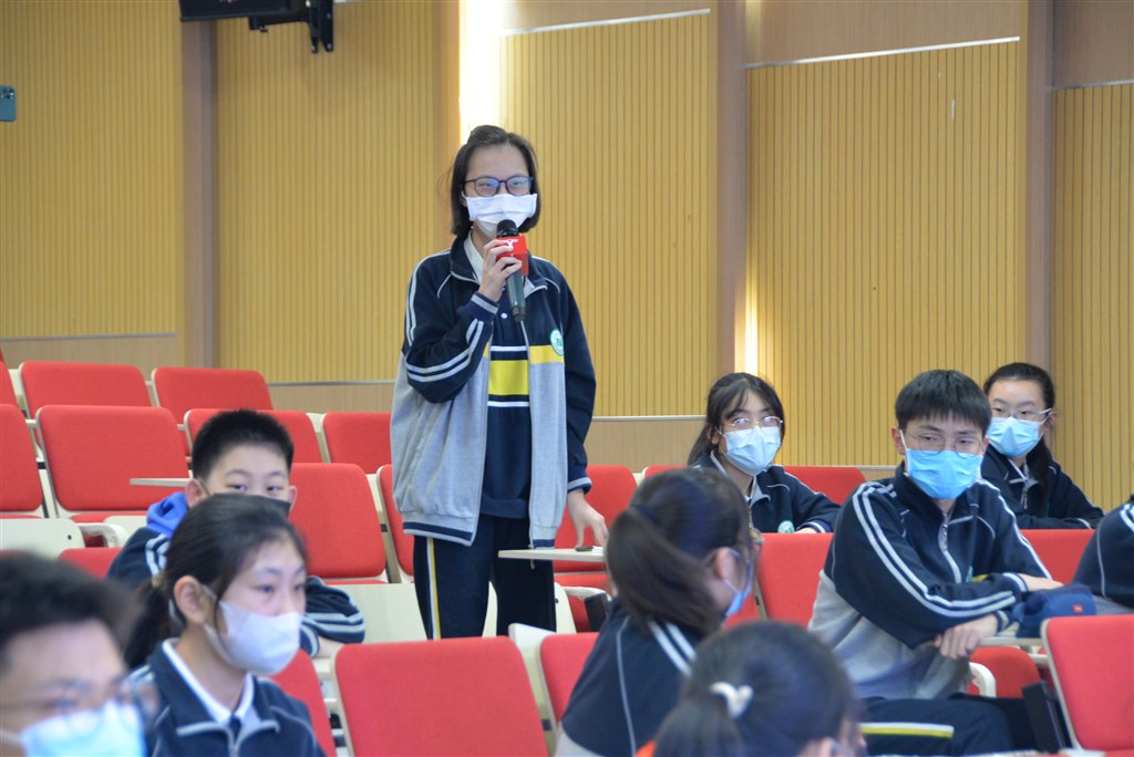 报告厅内,同学们端正坐姿,挺直腰背,求知的热情从眼中流露。他们仔细耐心地听着、记着,珍惜这来之不易的学习机会。大家倾听着工作人员讲解着新能源汽车的原料、结构、优势、制作工序和目前发展状况以及未来的进阶可能与远大目标。在这过程中,同学们积极与工作人员互动,大胆发言,积极思考。
