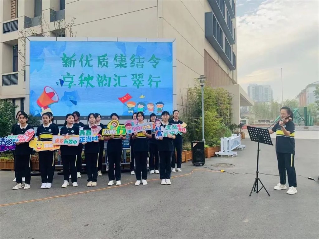 人间朝暮,叶落惊秋。在这闪烁着希冀的金秋时节,新学期如期而至。新翠中回归一年之际,回首去岁,硕果欣然;新优质学校创建之时,展望今朝,宏图跃动。 听,秋天校园音乐会! 朝霞映照着开学的笑靥,校长备好开学礼,在校门口迎接同学,一一送上开学的祝福。 竹音嘹亮,共奏华章。竹音合唱团与八(9)竹盈中队乐队早早做好准备,昂首挺胸地迎接新学期的同学们。“秋的赞歌”校园音乐会拉开序幕。吉他、电子琴、架子鼓与悠扬的歌声一道响彻校园。明媚青春,光辉闪耀,为新学期注入无限活力。 瞧,正能量开学典礼! 徐徐翻开九月的篇章,开学典礼在期盼中正式开始。新的学年,学校又走进一群意气风发的少年。七年级1班、5班、9班带来队列展演,展示夏令营训练成果。从精彩的展演中我们看到昂扬的青春面貌、良好的纪律意识与强大的集体荣誉感。 劲竹当奋励 辛勤的汗水,换来丰硕的收获。屠国斌副校长为上学期三好学生代表及三好学生标兵颁奖。随后,章艳副校长宣布获得文明班级的名单,丁连伟书记为他们颁奖。 文明班级代表八(1)禾鸣中队展示风采,歌声飞扬,魅力青春,活力无限。只有磨砺过的青春才显厚重,只有担当过的青春才显价值。 青筠亮竹音 薪火相传,生生不息。岳雨菲老师作为新教师代表发言,并为即将退休的刘卫平老师献礼。刘老师提出对翠中的期待与眷恋,并回赠字画。 最后,陈文伟校长为全体师生做“开学第一讲”。他勉励全体同学做一个精神上气象万千的人,从今天起,关心自我,关心他人,亦要关心国家与社会;从今天起,阅读书本,阅读生活,阅读人生,胸中冰雪无瑕,怀内热血难凉! 新的学年,总有崭新的机遇和挑战;新的学年,总有美好的憧憬和愿望;愿同学们燃烧青春的激情,放飞青春的梦想,共同描绘属于自己的青春乐章! 撰稿:张慧琳 拍摄:田盈 审核:宋华燕
