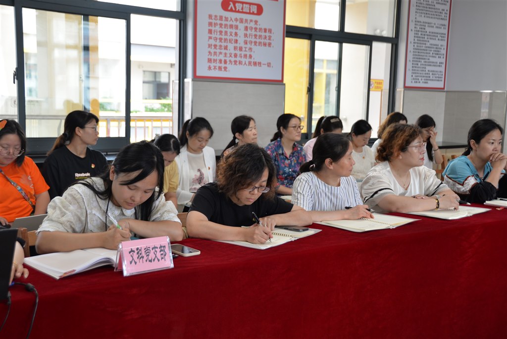 为贯彻落实全面从严治党要求,稳步推进新学期党总支党建工作,9月13日下午,常州市翠竹中学党支部开展新学期第一次党员会议,校党总支书记丁连伟主持本次会议。 修养党性,培根铸魂 书记约课第二讲,丁书记为大家讲述了做好新时代意识形态的重要性。丁书记从“什么是意识形态”、“为什么意识形态工作极端重要”、“意识形态工作的主要任务”、“加强意识形态工作的阵地建设”、“加强意识形态工作的有效措施”、“正确把握意识形态工作中的若干关系”这六个方面进行讲解。意识形态工作是党极端重要的工作,要牢牢把握党对意识形态的领导权,党员教师要进一步提高思想觉悟,强化党员角色意识,明确前进方向,充分发挥先锋模范作用。 用心用情,先锋先行 喜迎二十大,奋进新征程。为迎接二十大的到来,暑期党组织举办了系列活动,党员教工积极参与。办公室宋华燕主任,总结了各项活动的开展。好书分享活动中,党员教工沉浸阅读、倾情分享,共同营造了多读书,读好书,善读书的良好学习氛围。“大家访”活动中,党员教工走进家庭,与学生、家长近距离沟通,用心用情,尽责尽力,用爱串联起家校的两端。 谋今思远,聚力而行 会议最后阶段,丁书记提出要不断加强党对教育的全面指导,认真贯彻落实党的教育方针,作为党员教师要常问自己“为谁培养人”、“怎样培养人”以及“培养怎样的人”这三个问题,要充分利用“学习强国”平台,加强自身理论学习。 本次党员大会为新学期党支部党建工作指明了方向。相信全体党员一定会团结一致、凝心聚力、担当作为,以积极向上的精神状态、出色优异的工作成效推动支部党建工作的高质量发展。 撰稿:张滢钰 拍摄:田盈 审核:宋华燕