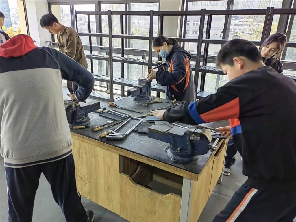 以前听到别人提到“金工”二字总一知半解,以为是和金子有关的东西。而今天我参加课程之后,才发现这门课,这种职业的魅力所在。我们体验的钳工是金工的一个分支,我们先画线,然后开始锯割,锯割出大致形状后,已经是满头大汗。锯条也废了一根,接着用锉刀使劲打磨,这活真不好干:作图要细心,锯割要点心,重复再重复地“锉”要的是耐心。虽然很苦很累,但最终用汗水收获了我自己的作品—— 一个“Z”字,虽说还是有些瑕疵,但是心里高兴。                                           ——七(2)彭立程