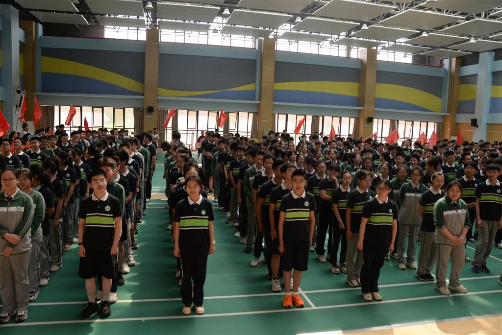 “OMG~why?”正奋笔疾书的九年级学子们带着疑惑不解来到羽毛球馆,准备体能训练。音乐声响起的刹那,一群彩旗少年、鲜花少女们蜂拥而入,学弟学妹们手捧鲜花彩旗将他们齐齐围在中间,用满怀真挚的歌声传达他们的祝福,“你笑起来真好看,像春天的花一样,把所有的烦恼、所有的忧愁统统都吹散……