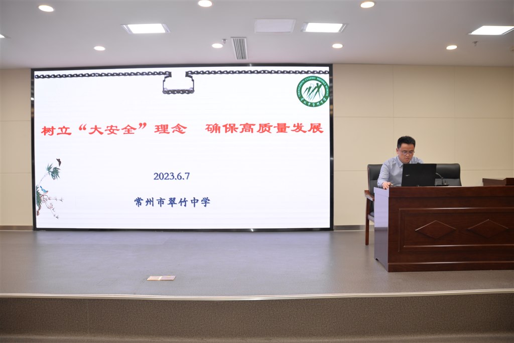67日,常州市翠竹中学全体教职工齐聚一堂,召开期末安全工作会议,陈文伟校长主持会议并做专题讲座。