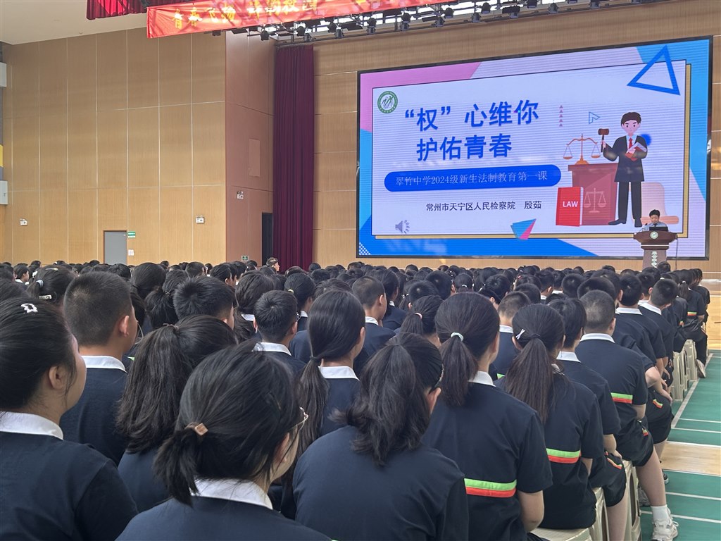 为了增强学生的法治意识,学校特别邀请了天宁区人民检察院未成年人检查室一级检察官殷茹女士为新生们带来了一场生动有趣的法治讲座。殷检察官以案说法,深入浅出地讲解了青少年常见的法律问题,引导学生们树立正确的价值观和法律观念,告诉每一个少年的你