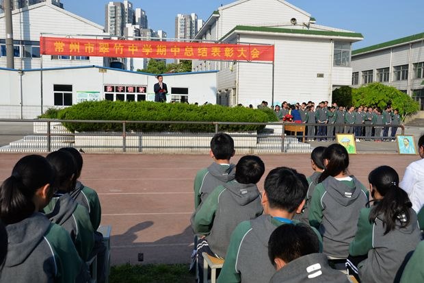 4月28日下午,常州市翠竹中学七八年级师生在操场隆重集会,举行期中总结表彰大会。短短的一节课时间,却容量丰富,形式多变,满满的正能量。 正能量一:我秀我舞台 期中表彰大会由学生全程参与,学生主持,学生展示,用活动给学生搭建属于他们的舞台,鼓励学生散发属于自己的光彩。 学生主持人借着期中这个节点,带领师生一起回顾了半学期的学习、生活,当她用优美而深情的语言描绘那一个个动人的场景的时候,一个个难忘的瞬间慢慢被放大,在场的师生都沉浸在回忆中。 表演艺术才艺和展示文学才华的两位同学各有特色。七(8)班的周诗琪,她从小就喜欢音乐,梦想着能在音乐的路上有所发展。学习古筝六年有余,已经通过十级考试,并曾在多次比赛中获得金奖。她享受学习古筝的过程,总能随着旋律的起伏感受心情的变化。音乐使她热情活泼、性格开朗,音乐也使她更加自信、乐观地面对生活中的挫折。八(4)班的汤圆,是不折不扣的翠竹小诗人,她的文字总带着淡淡的烟火与浅浅的禅意,她在纷繁的物象中寻找宁静,她始终相信,一个内心真正明净旷达的人,无论是在逆境里行走,还是乱世间徜徉,都可以让自己在失意中超脱,获得平静。这两位别具特色的小伙伴让我们看到了同龄人不一样的生活状态,她们的艺术之梦、文学之花正在兴趣的牵引下、汗水的浇灌下变得丰盈多彩。 正能量二:我有我骄傲 分享自己故事的三位同学在平凡的生活中亮出自己的精彩,他们自带“特效”,散发着少年人独特的光芒。 陶昱如,这个学习艺术的孩子,加入了学校田径队,在苏教练的精心指导下,运动成绩有了很大提高,身体素质也有了明显的提升,更重要的是,在艰苦的训练中,她明白了拼搏和坚持的真谛,这份独特的体验将陪伴她成长。 何嘉杰,这个在老师家长眼中有点调皮的孩子,对创客有着浓厚的兴趣。因为参加学校的校本课程,爱上创客,在创客的路上一路狂奔。浓厚的兴趣加上刻苦的练习,加上老师的帮助,在市青少年科技比赛中顺利突破,闯入决赛。 蔡欣宇,学校工作的骨干,这个孩子在紧张的学习之余,积极投入于班级事务和学校事务,作为班长,他帮助老师管理各项班级事务;作为自管会的一员,他认真做好自己的检查工作;作为共青团的一员,我积极响应团组织的号召;作为学生会的一员,他积极参加学校的各项活动,贡献出自己的一份力量。 每个孩子都是一朵花,或鲜艳,或清雅,或香气扑鼻,或摇曳多姿,他们在自己成长的道路上,绽放属于自己的光彩。 学习不止痛苦,成长各有风华。期中总结表彰大会不光肯定和表彰学习刻苦努力,成绩优异的同学,也看到不断进步,不放弃梦想的同学;不光鼓励学生在学业上有所突破,更鼓励学生发展兴趣,脱颖而出。(毛乐乐)