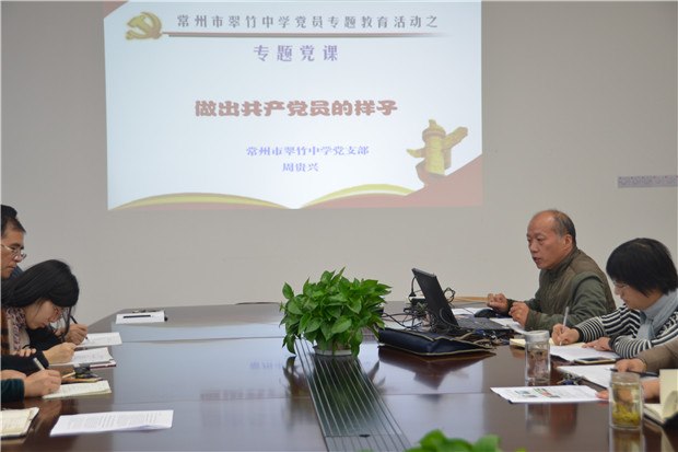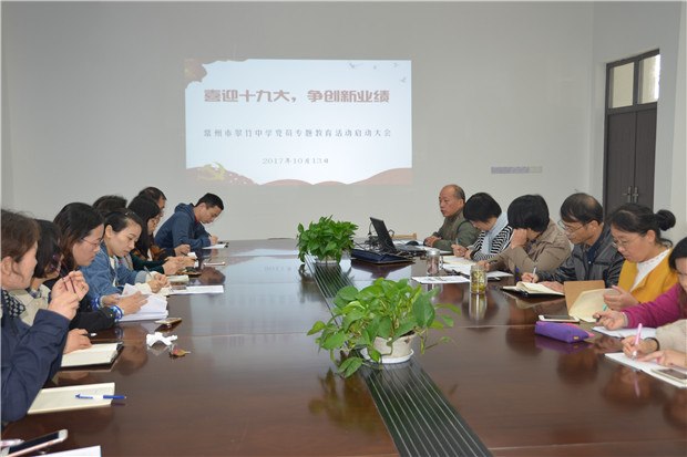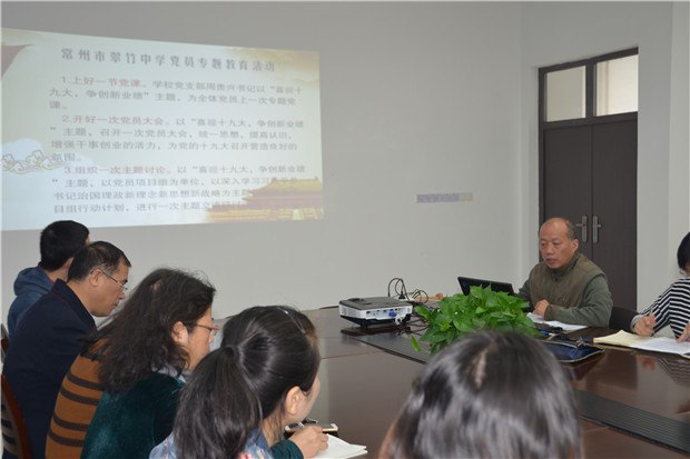 为迎接党的十九大的胜利召开,扎实推进“两学一做”学习教育常态化制度化,1013日上午九点五十分,常州市翠竹中学全体党员在四号楼一楼会议室召开专题教育活动启动大会,周贵兴书记主持本次大会。