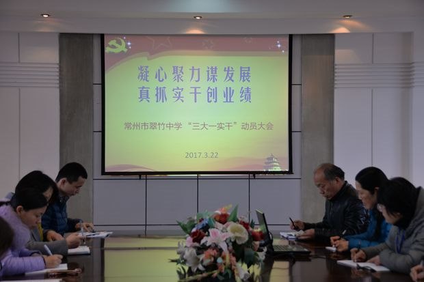 为了深入贯彻常州市委,教育党工委关于开展“大讨论、大走访、大转变、实干为民”活动的有关要求,常州市翠竹中学党支部对全校党员进行了“三大一实干”活动动员。学校党支部书记周贵兴同志主持会议并首先讲话,他阐释了“三大一实干”活动的重要内涵,强调要准确把握“三大一实干”活动的目标要求,并就学校开展 “三大一实干”活动做了部署。 随后两位党员代表贲秋萍老师和刘立萍老师结合自己的教育教学实践,结合“两学一做”学习教育中的要求,和全体党员分享了她们感人的爱生故事和教育感悟。 最后吴栋校长结合学校实际作了重要讲话。他指出,“三大一实干”活动,是落实上级精神的重要抓手,是“两学一做”学习教育的延伸,全体党员要带头学习,领会精神和要求,要发扬敢于担当、善于作为、敢于奉献的作风,积极主动地落实到自己的教育教学工作中。在学校改建、20周年校庆、学校主动发展中期评估之际,每位党员应该思考以怎样的态度、行动来为学校发展、学生成才做出努力和贡献。号召大家围绕着学校的中心工作、重点工作,通过大讨论、大走访,抢抓机遇,科学决策,找工作中的短板,施举措、争优势、强信心,通过大转变,强化责任意识,明确责任、推动责任落实、工作落实。 会议一并部署学校新学期党建工作,动员全体党员教工进一步振奋精神、担当有为,发扬“团结实干”精神,以“三大一实干”活动为主抓手和突破口,奋力推动学校办学再上新台阶。