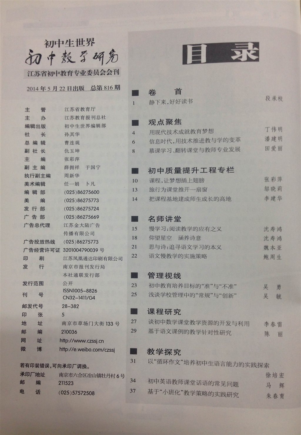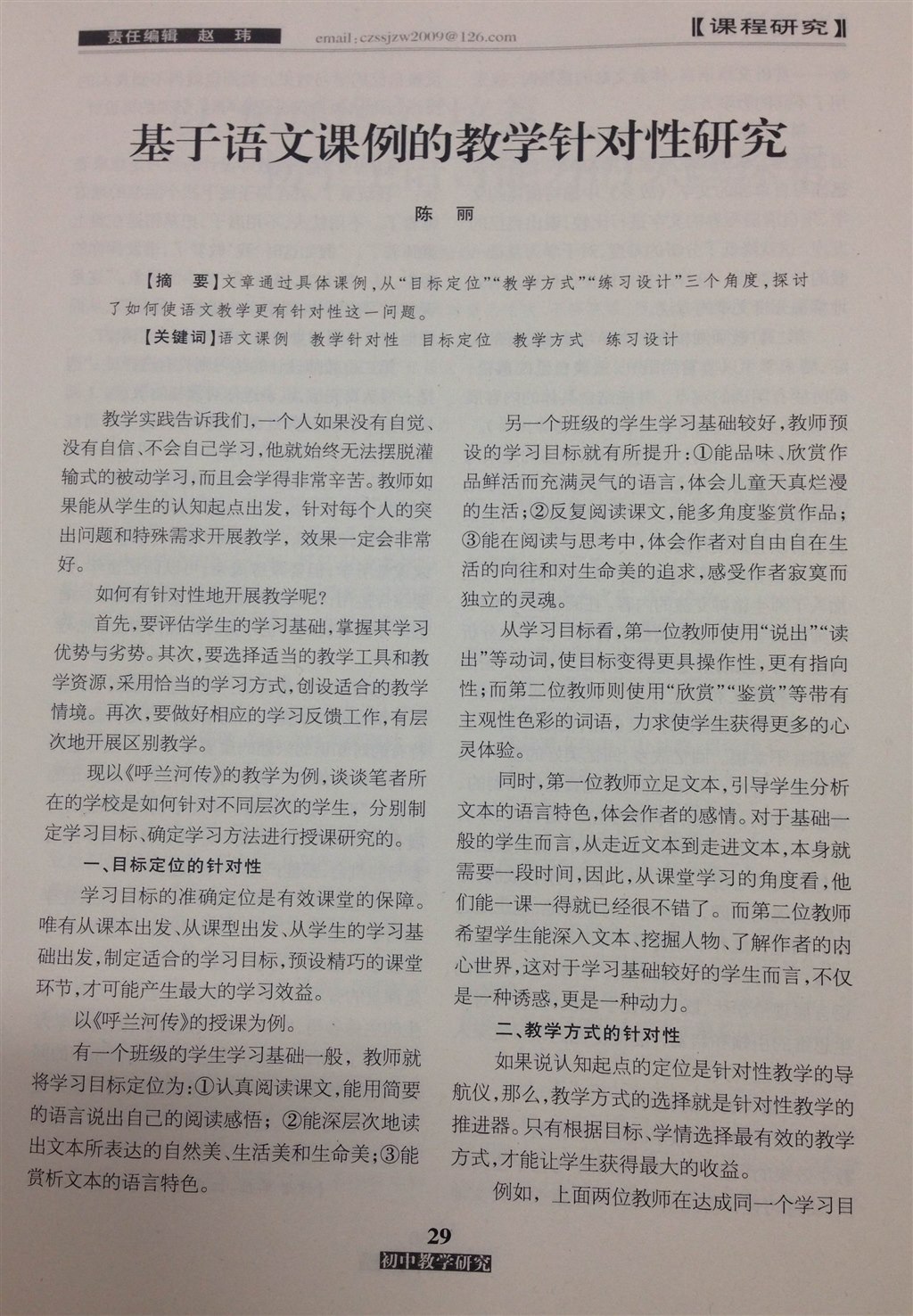 陈丽:《基于语文课例的教学针对性研究》刊于《初中教学研究》