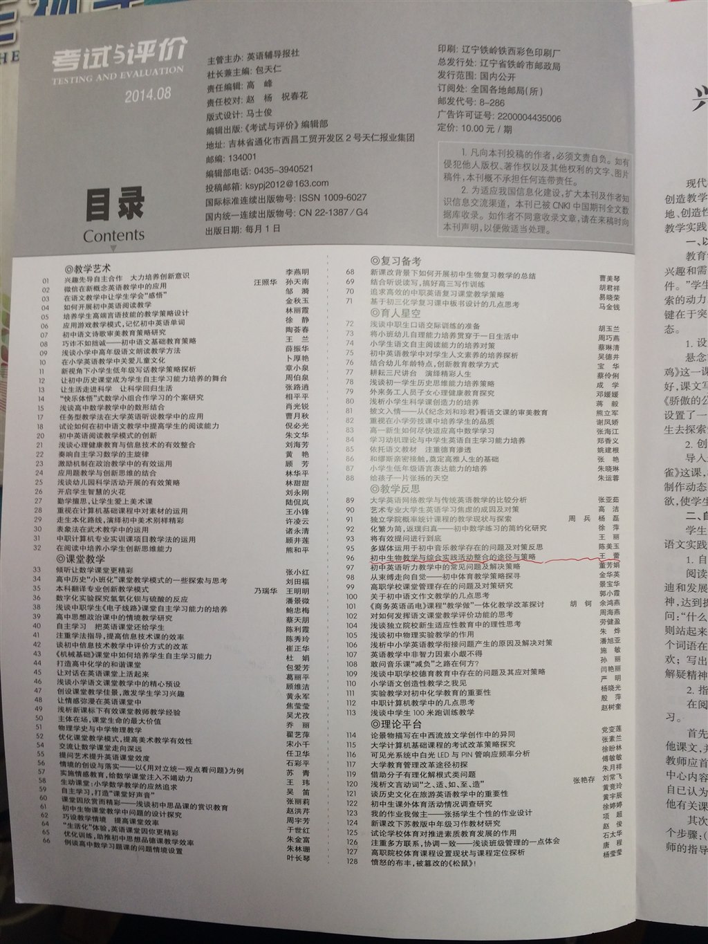 2014年9月发表于省级刊物《考试与评价》